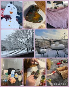 We waren er rond elf uur. Opgetogen vertelde ze van de specht en zoonlief liet het filmpje zien dat bij het verhaal hoorde. Daarna waren ze boodschappen gaan doen en hadden lekkere koekjes gehaald voor bij de thee voor ons. We konden volop genieten van haar vrolijke en gezellige babbel en bijkletsen met zoonlief. Natuurlijk moesten we ook de blokhut achter in de tuin bewonderen, die schoonpapa met hun hulp had gebouwd. Kranig klusje geweest. Het is ruim en praktisch. Schone dochter was er even. Ze moest naar de fysiopraktijk waar ze werkt, om de reintegratie na haar operatie te bespreken. Dat was dichtbij, een blok verder. Ons bezoek was kort maar krachtig en erg knus.
