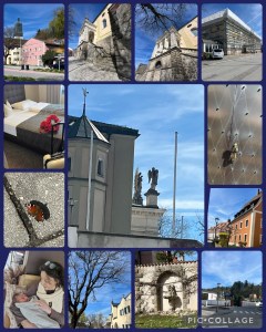 Geen restaurants open vandaag, mar de begraafplaats wel en alles is hier zeer katholiek, dat viel niet te ontkennen. Beelden te over, drie bovenop de entree van de kerk, de toren stond trouwens ook in de steigers, ze hebben het druk. Vanwege het aantal trappen naar de hoofdingang liet ik het rechts liggen, dat gold ook voor de oude begraafplaats, die tegen een berg was gebouwd. In de armen van een berg, kan ik me voorstellen, zal heel geborgen zijn.