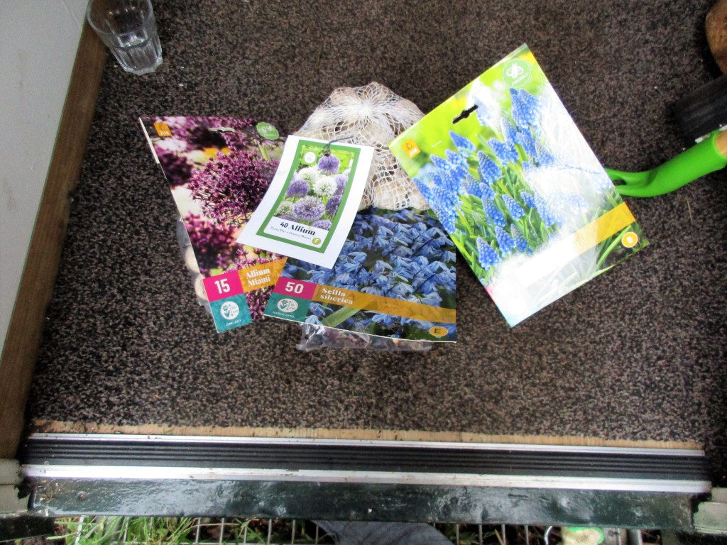 Het zachte weer had half Nederland op de been gebracht. Bij mijn favoriete kwekerij was het druk. Het was een groot terrein, dus ruimte genoeg en iedereen hield goed afstand. Natuurlijk bleef het niet bij de bollen. Zo aanlokkelijk als al die mooie vaste planten erbij lagen. Dat was een mooie gelegenheid om de schaduwborder aan te vullen en de bosaardbei en de hondsdraf in de kiem te smoren. Twee wiite lupinen, drie Lysimachia’s, drie Franjekopjes, en drie stuks stinkend nieskruid en omdat ik goed op dreef was ook voor in de border achteraan drie salvia’s met de wulpse naam ‘Hotlips’. De bollen beloofden blauwe druiven, sieruien, groot en klein en scilla en als kers op de taart een mooie witte doornloze roos.
