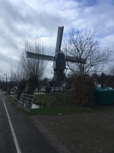 Op het vriendelijke weggetje langs de boomgaard, de schapen en de knotwilgen, al dan zonder pruik, omlijstten onze voetstappen op de enige juiste manier. Het ademde land en buitenlucht. Drie mannen waren halsbrekende toeren aan het verrichten bij de waterwipmolen, vermoedelijk onderhoud en, wat zou dat fantastisch zijn, om hem aan de praat te krijgen. We werden achterop gefietst door onze afspraak, die, zoals gewoonlijk, een golf van spontane blijdschap en enthousiasme aan de dag legde. Het werkte als altijd aanstekelijk.
