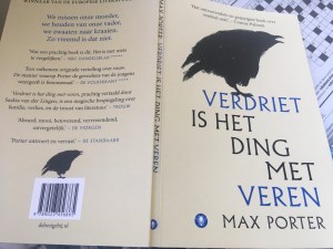 De guirlande in de boom voor het raam is verworden tot een stemmig mineur. In flarden hangt ze terneer in twee losse delen. Kauw zit er als zwarte symboliek achter en bewaakt zijn of haar gebied. Straks vliegt ze weer naar de dakgoot en plukt wat aan het nest. Het zijn op zolder de naaste buren, die aardig kakelend wat decibellen teweeg kunnen brengen. Het mooie boekje van Max Porter: ‘Verdriet is een ding met veren’ dat onder handbereik ligt, is het antwoord op het verwerken van onaanvaardbaar leed. Uiteindelijk na een lang woord-rijk gevecht met kraai is de vader van de tweeling eindelijk in staat om kraai te vragen op te krassen. Elke veer van kraai was onderdeel van het proces van verwerking. Nu was het gedaan.
