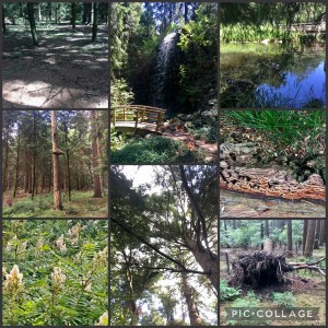 De knakkende takjes leverde een speurtocht op naar de luidsprekertjes bij de bomen. Tk, tk, tk. Inderdaad maken brekende takjes en twijgjes een Tk-geluid. De natuurkunst-de dode boom met de schilferende bast, de ontwortelde boomstronk, de waterval, het mos en de bloeiende varens-wedijverden in hun natuurlijke habitat met de associaties van de kunstenaars.