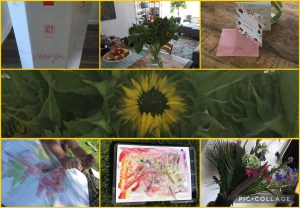Tijd voor de tuin. Dochterlief zou wat meenemen voor de lunch en wij hadden gisteren wat babaganoush en brie, alcoholvrij bier en crackers gekocht. In die lange periode dat we weg waren, had alles aan groen en bloemen zich redelijk staande gehouden, grassen en brandnetels incluis. Dat betekende dat er werk aan de winkel was, maar vandaag niet. Deze week was het feest. De Oost-Indische kers tierde welig, evenals de geranium, de dahlia, de winde en nog wat verdwaalde floxen.