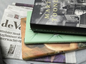 Ik wist allang welke ik moest laten stuiteren. Die van het ongeorganiseerd doorgaan met alles tegelijk willen doen. De chaos mocht heel hard stuiteren en in dit geval ketste ik hem tegen de muur van de structuur. Met de deadlines en het vele lezen dat stond te gebeuren schoot het maar niet op. Misschien was het de moedeloosheid, veroorzaakt door de veelheid ervan, die nekte. In een vlaag van organiserend vermogen besloot ik de bladzijden op te delen naar de dagen, die nog restten voor de bijeenkomst van bijvoorbeeld de biografie-groep of de boekenclub. 35 bladzijden voor Toonder, 21 bladzijden voor Pieter Waterdrinker en 15 bladzijden voor Roxanne van Iperen. Daar tussendoor de kinderboeken die nu hopelijk snel zullen komen. Lief ondersteunt me van harte bij dit voornemen en stemt zijn bezigheden er op af.
