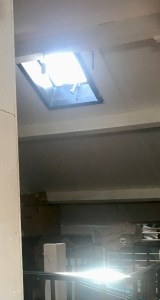 Het uitzicht op de wereld boven mij geeft beurtelings snel drijvende lucht, van nevelwit tot duifgrijs, soms valt het open en oogt het stralend blauw om in enkele minuten weer te veranderen. Dikke druppels op het raam verraden de buien van vannacht. Door de ventilatiekoker zweeft een vlaag wind naar binnen. Het geeft een zacht gesuis.