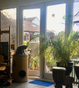 Bij de supermarkt haalde ik vast de ingrediënten in huis voor de Imam Bayildi. Op de fruitschaal liggen nu de auberginen, de paprika’s en de pepers hoog opgestapeld. Een lust voor het oog. Pluis had de bank willen confisqueren, maar snel haalde ik haar eigen krabpaal met kussentje erbij, daar zat ze hoog en droog, prinsessen-heerlijk, en keek minzaam toe hoe wij ons de bank hadden eigen gemaakt. Af en toe kneep ze de ogen dicht, alsof ze, bij hoge uitzondering, er haar goedkeuring aan gaf. Het moet niet gekker worden.