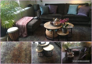Daarna was de jacht op de accessoires geopend. Kussentjes in de juiste tint en een dik plaid voor de op handen zijnde gasbeperkende winter. Bij de kringloop zochten we naarstig naar een stoel. Eigenlijk vond ik er een, een paarse rotan brede zit, maar die kende een pittige prijs, waar niets tweedehands op aan te bemerken viel. We keken ook nog naar lampen, maar vonden geen model naar het zin. Kalmpjes wachten tot we er tegen aan zouden lopen was het devies. Langzaam maar gestaag groeit alles naar ons beider zin. Onze smaak is nog steeds dezelfde. Daarom is het goed sparren over wel of niet.
