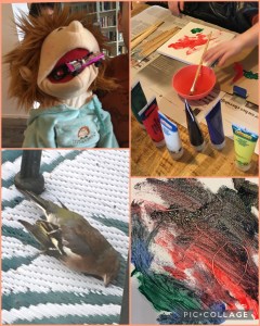 Terwijl dochterlief de oudste naar zijn coach brengt houden hij en ik quality time. Schilderijtje verven, met veel vijven en zessen hou ik zijn korte spanningsboog gevangen. Daarna zijn er de autootjes en grote Greet, die auto’s te eten krijgt, maar met de kleine poppetjes speelt hij het leukst. Hij laat ze van de tafels vallen ‘aaaaaahhhhhh’, dan klimmen ze er weer bovenop, om door te duikelen naar de volgende tafel en weer te vallen ‘aaaaahhhhh’ bast zijn stem van laag naar nog veel lager. Nou vooruit ook een tv-filmpje en hij kiest voor ‘de vloer is lava’. Zo maak je als oma ook nog eens wat mee. Het overbekende spel in het echt uitgevoerd met kolkend rood en oranje, drie mensen die op de drijvende objecten proberen te springen, zoals een ronddraaiend hemelbed, een kist, een kaptafel, een heen en weer zwiepende kroonluchter. Hij geniet ervan. Lacht smakelijk als iemand in de brei verdwijnt, maar springt ook huizenhoog als twee lui de overkant bereiken.