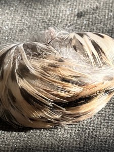 In de tuin lag vorige week een heel klein bundeltje veren. Bij nader onderzoek bleek het bosje vast te zitten aan een pennetje. Zuslief had gisteren een graspieper vereeuwigd. Dat wist ze niet, maar iemand anders had het haar op facebook bij het zien van de foto ingefluisterd. Bij nadere bestudering van de graspieper en het bundeltje gevederte ben ik er van overtuigd dat het ook een graspieper is geweest die in de tuin te grazen is genomen.