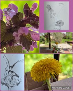 Gisteren voor het eerst sinds lang weer een paar tekeningen gemaakt, twee met blind de contouren tekenen in tien minuten en later ingevuld met turen naar de paardebloem en de paarse dovenetel en de tweede naar foto van de twee ooievaars op het nest. Fijn om te doen en eigenlijk te lang geleden. Lief en ik spreken af dat ik ergens een klein schetsboek op de kop probeer te tikken en onderweg tijdens de uitstapjes, gewapend met de tekentas en het kleine opvouwbare krukje, aan de slag ga. Goed plan, we hebben al twee steden op het oog, een in Kroatië en de ander aan het Balatonmeer. Heerlijke vooruitzichten tussen de tuinbedrijvigheid door.