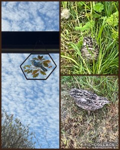 Wel een bijzondere dag, want we kregen alweer bezoek en ditmaal van een kwartel, die stilletjes bleef zitten toen lief hem gelukkig vanuit zijn ooghoeken zag, terwijl hij er bijna met de volle kruiwagen overheen zou zijn gereden. In eerste instantie dachten we dat het een fazant was, maar zoonlief, jawel De Vogelaar, wist direct te corrigeren. Een kwartel dus. Was hij nou gewond of niet, nog juveniel of wat. Ik ging het binnen opzoeken terwijl lief verder liep om de kruiwagen te legen. Toen ik terugkwam was de vogel gevlogen. Niet lettelijk natuurlijk, want dat lukt een kwartel niet zo best. Maar ze kunnen heel snel lopen, begreep ik. Gelukkig hadden we de foto’s nog. Fazanten lopen er hier wel rond, maar een kwartel was er tot dan toe nog niet geweest. Nu heeft de buurman nieuwe kippetjes aangeschaft. Misschien heeft hij er ook een paar kwartels bijgenomen. Het blijft een van die raadselen der natuur.