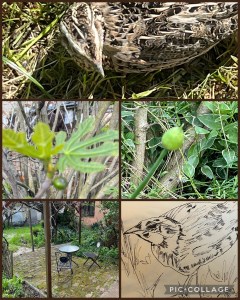 De zon doet haar uiterste best, maar de warmte die ze afgeeft, wordt bij tijd en wijle ingehaald door een koude wind. Ik zit op het randje van het terras, in diezelfde zon en negeer de wind. Het is zo heerlijk stil buiten. De tortel fladdert naar een volgend boom om daar het hoogste lied te roekoeren, de huismussen tjilpen hun vreugde om de nieuwe dag. Alles is stil en vredig. Verscheidene vogels laten zich horen, maar doorgaans te kort om te registreren wie ze zijn. Gisteren kwam onze gast weer opdagen. De kleine kwartel, die zich niet liet afschrikken door ons en zelfs steeds in de buurt kwam stappen om hier en daar tevreden een wormpje mee te pikken in de door ons omgewoelde aarde. We hebben hem Quark genoemd en zijn blij met dit au naturelle huisvriendje.