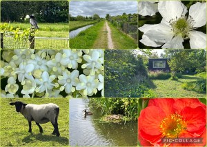 Een kraai zat op de staander van een hek. Hij had een voorname bontjas aan en keek spiedend om zich heen. Bij zoveel indringers vloog hij krassend een deurtje verder. Gelukkig had ik net een foto kunnen schieten. Halverwege nog een ontdekking. Een fuut zat op haar nest in de sloot en het mannetje zorgde nijver voor de juiste onderbouwing. Dames schaap in het weiland ernaast, met aandoenlijke bruine koppies en hun witte jassen, keken ons aan met welhaast peinzende blik. ‘Waarheen gaat gij’. Kleine filosofen hoor, die dames.
