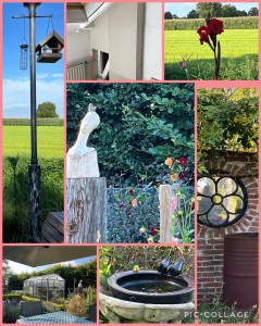 In weze is het niet verder dan een half uurtje hier vandaan. We worden met open armen ontvangen en een rondje door de bloementuin is de eerste gang, weelderig en in volle bloei staat alles, tussendoor haar keramieken en sculpturen van cortenstaal. Veel vrouwfiguren en abstract werk. Daarna het atelier, het vers gemaakte werk in olieverf om te bewonderen, de dochters en de nieuwe abstracten. Kleurrijk en expressief zoals ze zelf is.