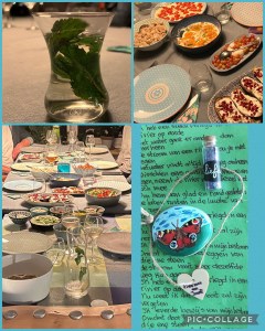 De gastvrouw had nog een verrassing voor ieder stel. Eerst droeg ze de mooie tekst voor van Bram Vermeulen, een van mijn lievelings-dichters/zangers: ‘De Steen’ een toepasselijke tekst over hoe ieder van ons van betekenis is voor anderen. Alleen al de wetenschap dat we allemaal, soms zonder het bewust te zijn, van belang zijn voor andere levens is cruciaal. Dat je een steen in de rivier bent, die er voor zorgt dat de stroming verandert is zo’n sterk en mooi idee. En wij, in het onderwijs, mogen schrijven op de aanvankelijk nog onbeschreven bladen van al die kinderlevens, die we onder onze hoede krijgen. Dat zorgt ervoor dat onderwijs een passie is.