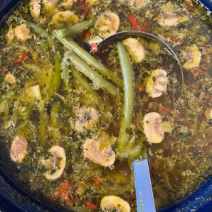 Zo de geïmproviseerde Soto(dwars door de koelkast) is klaar voor vanavond. Dit keer nog wel met kip, die lag te wachten in de vriezer en nu op moest. Sinds we veel minder vlees zijn gaan eten, wordt het ook steeds moeilijker om je over vlees eten heen te zetten. We zijn flex-vega. Dus bij etentjes en dat soort dingen kan het, zeker als er een kaart is met weinig vega-mogelijkheden, maar het liefst eten we zonder. Net zo lekker en ingrediënten te over om voldoende eiwitten te scoren.