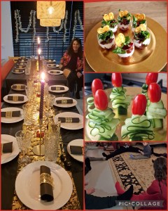 Fijn dat het een succes was allemaal. Ik denk dat je pre-kerst houdt zodat de kinderen vrij zijn hun eigen kerst te vieren? De tafel oogt schitterend en jij ook feestelijk.