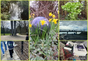 Dochterlief stuurde twee foto’s uit de tuin. Bloeiende narcissen bij de paarsblauwe heksenbol en de prachtige Helleborus in bloei in volle glorie. Van de week gaan we vast tijd vrij maken om daar ook de lente te omarmen.