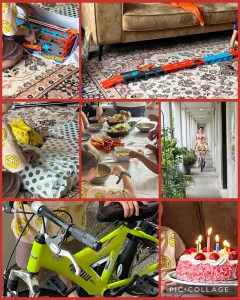 Bijna iedereen was op het feest, vroeger of later, alleen was de helft van de familie van zoonlief met buikgriep thuisgebleven. Daarna konden de cadeautjes worden uitgepakt en hadden we geen kind meer aan de kleintjes, die met veel decibellen de nieuwe fiets hadden ingewijd net als de Hot Wheel autobaan met diens autootjes. Super cadeau en super lawaai.