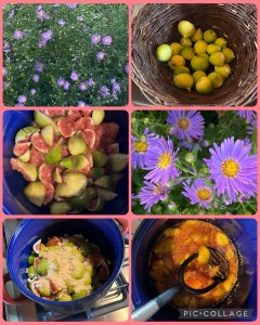 De zon probeert door het dichte wolkendek te komen, maar het lukt nog niet echt. Lief is in de weer met ruimen en snoeien tussen de buien door. Herfst komt met rasse schreden naderbij. Zelfs de berk begint al te kleuren. De herfstasters staan volop te pronken met hun uitbundige bloei.