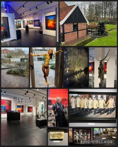We konden naar binnen. Er was een doorlopende expositie van de eigenaar en de stichter van dit museum, Ton Schulten, en in de zaal ervoor waren schilderijen en beelden te zien van andere schilders uit Ootmarsum. De Paeskearls kwamen er veelvuldig op voor, een fenomeen van Ootmarsum tesamen met het vlöggeln, waarbij de Paeskaerls en de mensen van het dorp al zingend hand in hand door de straten trekken. De Paeskearls bereiden ook het Paesvuur voor. Het zijn acht katholieke vrijgezelle jonge mannen van rond de twintig. Ze zijn herkenbaar aan hun lange beige regenjas, zwarte hoed en broek en daardoor onmiskenbaar in de kunstwerken.