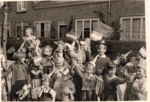 Die oud en nieuw avonden waren een beleving op zich. Om twaalf uur stonden alle deuren open van de straat en wenste je alle buren gelukkig nieuw jaar, ook de luitjes aan de overkant. Dan moest je wel tussen de rotjes en die vreselijk veel lawaai makende gillende keukenmeiden door laveren. Geen sinecure voor een angsthaas voor vuur. Gezellig was het wel. Buurman van Luyn had steevast een borrel teveel gedronken en gaf steevast met die grote lippen twee klapzoenen op je wangen, terwijl je al dronken werd van de lucht alleen. Bij iedereen viel wel een oliebol te halen. Die werden natuurlijk zelf gebakken en stonden in grote zinken teilen in de kelder afgedekt met een theedoek. Dat mocht ook wel met het grote gezin. Ze gingen in de week erna allemaal schoon op.