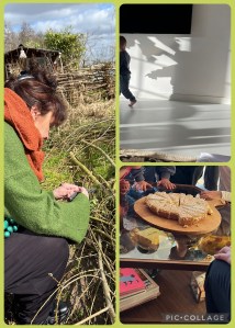 Aan de wandel naar achteren en daar meteen begonnen met het maken van de staken. Met drieën beter te doen, dat was zeker waar. Op het laatst, vlak voor we moesten opbreken, vlochten we nog een hekje en in deze actie presteerde ik het om te struikelen over een staak.Dat wil zeggen mijn hak van mijn kloffie bleef haken achter een van die staken. Het rijmt wel maar qua gevoel niet. Aiii. Dochterlief kwam aangesneld op de roep van haar zoon. Stijf van de schrik. Uiteraard, daar lag ik. De beer geveld, of zoiets. Op het hoofd, knie, pols en enkel, en vooral die laatste presteerde het om uit te groeien tot een pijnlijke, stijf wordende, aangelegenheid. Alle alarmbellen gingen af. Autorijden, tochtje naar Verweggistan, uitje met de zussen, alle afspraken voor de rest van de week tot zaterdag. Maar de eerste was natuurlijk het meest heftig.