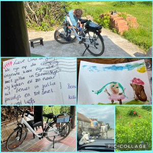 Dat lukte gelukkig, al kwam de fietsenmaker uit het huis van zijn moeder gesneld, want hij bleek om half twaalf al gesloten te zijn. Voor de verkoop van een nieuwe fiets kwam hij graag weerom. Eigenlijk hadden we het besluit allang genomen dus was het een kwestie van formulieren regelen en met klinkende munt, nou ja, per kaart, de kwestie bezegelen. Garantie voor drie jaar. De witte tourfiets mocht met Lief mee. We hadden een binnendoor route uitgestippeld naar ons dorp. Ik reed naar huis, boog nog even af naar Becefa om Lief langs te zien komen, maar bedacht dat dat onzin was en reed door naar huis. Daar stonden Agaath en ik. Vaag wist ik nog dat de sleutel van het huis, die ik eigenlijk nooit hoef te gebruiken, aan mijn sleutelbos van Holland hing. Gelukkig had ik die in het voorvakje van de auto liggen.