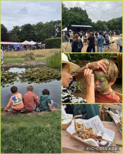 Lieve schoondochter is uitgeschakeld en nu hebben er twee schatten gedwongen rust . Het betekende dat mijn bezoek aan het festival van de oudste zoon, schoondochter en haar pa uitgebreid werd met twee van de drie rakkertjes. Ik had de hulptroepen ingeschakeld, want dochterlief en haar gezin kwamen ook, even als haar zus, dus helpende handen te over. Dat was nodig omdat de twee kleintjes razendsnel zijn en volop aan het experimenteren gaan, zeker als ze zich niet helemaal op hun gemak voelen zonder het wakend oog van pa of ma. Mijn moeder zou zeggen: ’Ze braaien de boter eruit.’