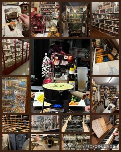 Met een hoofd vol zakten we af naar het winkeltje en even later stapten we de frisse buitenlucht in. Tijd voor de lunch. Zuslief zocht en vond een restaurant in Nijkerk met een gemoedelijke naam en daar bestelden we een lichte lunch en bespraken we het vervolg. Kaasfondue in Driebergen rond zes uur en tot die tijd een rondje Amersfoort, even naar de garage met een joviale strohalm in de branding voor een brandend lampje en de onbekende kringloop een wijk verderop met daarna een bezoek aan twee kledingzaken in Driebergen, waar het in de winkelstraat voor mij heel benauwd werd, vermoedelijk door houtgestookte kachels.