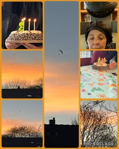 Daarna reed ik regelrecht de file in, niet een kleintje, maar ze was enorm. Er waren wat ongelukken gebeurd en binnen een mum van tijd stond alles muurvast rondom Utrecht en ver daarbuiten. Ik belde zoonlief alvast, dat we later kwamen. De moeder van schone dochter was er al en ze had een heerlijke gekookt. Voordat ik naar de kapper afreisde had ik nog twee boekjes gekocht van Kikker van Max Velthuis. Een voorleesboek en een om zelf door te kunnen bladeren met handpop kikker vast aan de kaft. Zoonlief zorgde voor een taart met drie kaarsjes en de kleine Nyong blies het met verve en wat hulp uit. In zo’n petit comité is het altijd heerlijk kouten over van alles en nog wat, waar normaliter tijdens een verjaardag geen tijd voor is.