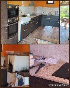 Ik ben er heel erg mee in mijn nopjes. Nu gaan ze het oude stenen fornuis met de houtoven nog aanpakken en dan is het geheel een juweeltje van nostalgie en moderne luxe. Voor mij de allereerste keer dat ik iets dergelijks onder mijn handen heb met al mijn huurhuiskeukentjes. Ik ga er dankbaar gebruik van maken. Hele visioenen van inmaakfruit, chutneys en jammetjes van allerhande, manden vol noten en vijgen staan me voor ogen. In de houtoven ligt natuurlijk een zuurdesembrood te bakken terwijl de geur hongerig en huiselijk maakt.