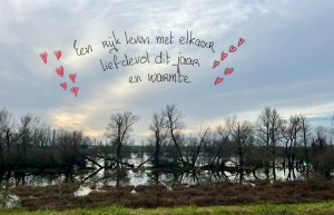Enfin. ‘Adem in , adem uit’, zeiden we en begonnen aan onze wandeling. Het was zo druk als we hadden gedacht, maar Amelisweerd kent genoeg paden om rustig en in stilte te kunnen genieten van de zon die prachtige plaatjes toverde op deze winterdag. Een mooie boom in vol ornaat, de oude boomgaard, de Kromme Rijn glinsterend en slingerend door de weilanden, een zon achter de wolken naast de jeugdherberg en het klompenpad langs de bunkers. Af en toe liepen we in de ganzenpas omdat er andere mensen passeerden. In het weiland speurden mannen rond, sommige liepen meters te meten. Geheimzinnige handelingen. Zouden ze wichelroedes hebben. Met onze koude neuzen liepen we voort. Niet slecht, toch alweer 5600 stappen deze tocht.
