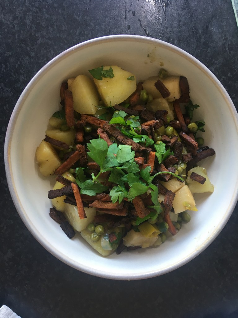 Bij de buurvrouw naast groeit het woekerende zevenblad. Toevallig had ik ’s ochtends gelezen dat je het niet moest uitgraven, maar steeds weer moest afknippen. Het duur langer, maar uiteindelijk legt het dan toch het loodje. Handige tip. Ook had ik ontdekt dat een krukje, ooit van broerlief gekregen, eigenlijk een handig wiedbankje was, dat je aan twee kanten kon gebruiken. Het zat hoger dan de kleine krukjes die ik normaal gebruikte. Zo was het achterover rollen, omdat ik door de knie niet meer omhoog kon, opgelost. Voor ieder ongemak een foefje. Nog even en ik hang van foefjes aan elkaar.