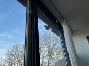 Het duurt even voor deze confrontatie is weggeëbd uit mijn hoofd. Als afleiding zijn er de geluiden die van buiten doordringen. De kleine kek-kek-kek- geluiden van het illegale echtpaar Kauw. Ze vliegen om beurten heen en weer en maken haast om hun nest op orde te krijgen. Soms zijn de takken bijna zo groot als ze zelf zijn. Zo’n overdwars balk in je snavel zal geen sinecure zijn. Ze gaan er dapper mee door. Het wordt tijd dat ik hier ook de boel bijslof, maar nog even wachten.