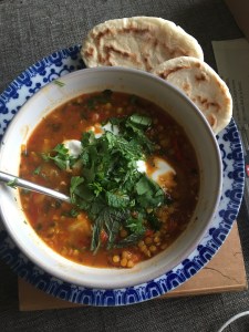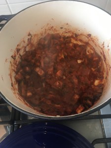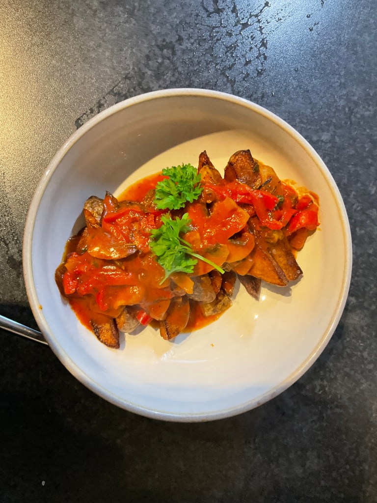 Recept van de Shakshura, een vegetarische aubergine/tomaat/eierenschotel uit Saoedi-Arabië, omdat ik daar gisteren heen moest vertelde mijn wijsvinger mij.