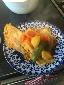 Serveer met lavash, een platbrood van bloem, water, olie, zout.