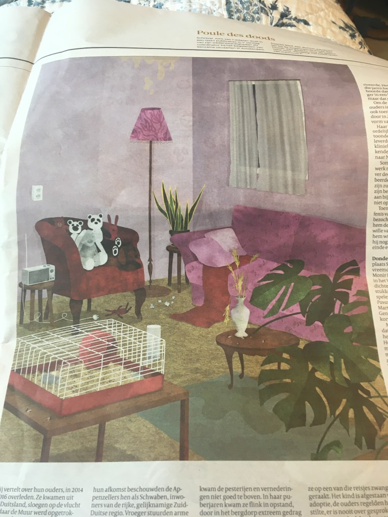 Een nieuwe tegelvloer in de hal van de flat, stralend wit in plaats van grijs beton. Ze waren er nog mee bezig en op mijn vraag aan een van de tegelzettters of hij dan de krant uit mijn postbus wilde pakken, keek hij me glazig aan. ‘Of kan ik er overheen stappen’, voegde ik er snel aan toe. Een instemmend gebrom. Het compliment van mij over ‘het chique vooruitzicht en nu nog een lift graag’ brak het ijs.