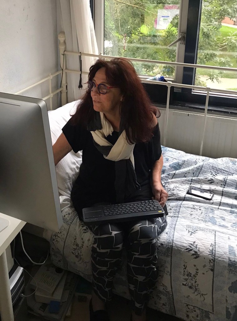 Het blijkt een serie te zijn en vanmorgen keek ik deel een terug. Aandoenlijke beelden. Een prijskaartje aan een badpak tijdens het zwemmen, een pijnlijke schouder opgelopen bij een val, die ze verzwijgt, bij het opwarmen van een maaltijd de ovenfunctie aanzetten in plaats van een magnetron, een deur vol memootjes, kattebelletjes voor het gebruik van apparaten, een auto willen openen met de voordeur sleutel. En dochter maar opspringen en wegrennen uit haar eigen verantwoordelijkheid om alles weer te effenen. Ziedaar de grote zorg van een mantelzorger.