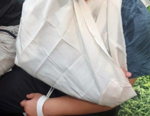 Voor de middelste van de drie was het park een groot walhalla. Hij kwam langs sjezen, terwijl hij een rood fietsje met twee jongetjes erop voort duwde. Glimlach van oor tot oor. Overal en nergens was er wel vermaak te vinden. Dan weer bij de dieren, op het voetbalveldje, bij de waterpomp, door het zand. Dribbel had eindelijk afleiding gevonden in een kleine stellage waarop je kon balanceren. Vanaf ons rustige plekje sloegen we hem gade. Over de bomen en de kinderstemmen heen ruimde het lawaai van de kermis, iets verderop. De oudste was er met zijn vader naar toegelopen, omdat hij niets kon doen met zijn arm in het gips. Weer niet voetballen, nog niet spelen en niet fietsen. Een hard gelag. Alle levenslust verdween in het spel op zijn telefoon.