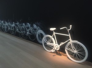 Maar de fiets was er wel voor toegerust. Een handig sleufje waar het boek opengeslagen in kon en het stuur het dichtslaan belemmerde. Officieel voor een iPad of iPhone is dit vernuft, vermoed ik. Film kijken is nog wat relaxter, want bij het fietsen worden de zinnen soms zeeën door de trapbeweging.
