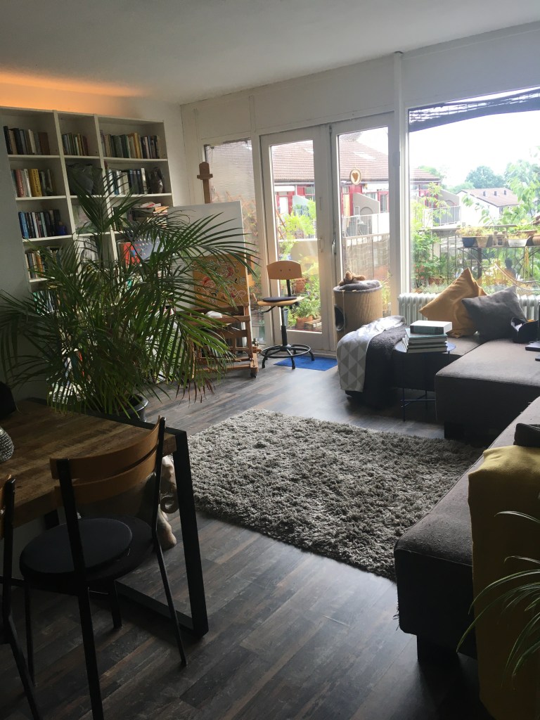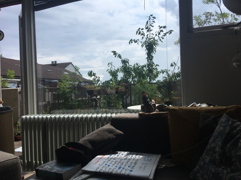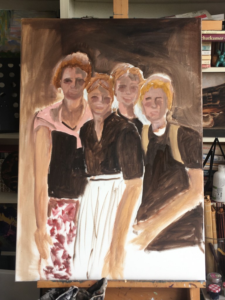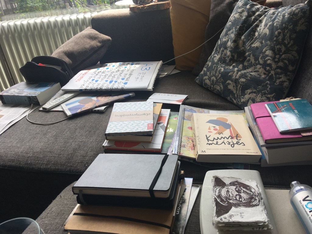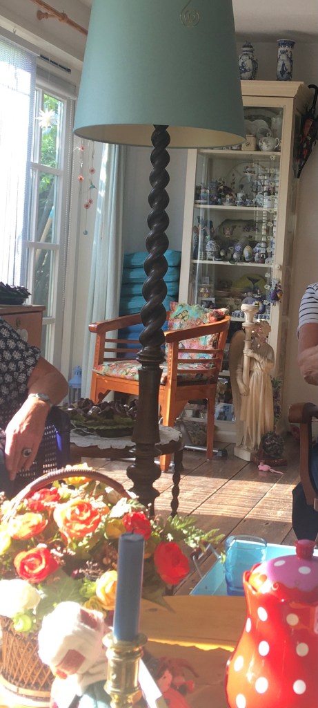 Bed verschoond, was in de machine en dan weer dat grote niets, dat alles opslokt. Het omwentelen van de trommel gaat gestaag door, voort en voort en voort. Het past bij de gemoedsrust, oneindigheid. Een bed verschonen met één hand valt nog niet mee. Links doet mee voor spek en bonen, terwijl ik het dekbed voorzie van haar nieuwe ‘ kleedje’. Ze mag steeds een punt vasthouden, waarbij het alert blijven geblazen is, zodat ze niet in een keer het volle gewicht van het dekbed te verduren krijgt.