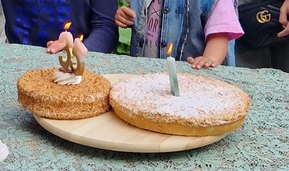 Potje koken, zoonlief en schone dochter maken hun eigen potje en rond zevenen komt de op een na jongste benjamin met zijn vader langs om een knuffie te geven aan jarige oom en broer en natuurlijk ook aan ons. Hij kijkt zeer verbaasd want heeft me eigenlijk het meest bewust via het scherm meegemaakt. Al gauw is het ijs gebroken en schaterlachten we om de spelletjes. ‘Er komt een muisje aangelopen’ is nog altijd een topper van de bovenste plank. Dan ontdekt die de auto’s, alleen loopt hij er niet naar toe, maar aan oma’s hand durft hij alles. Extra cadeautje.
