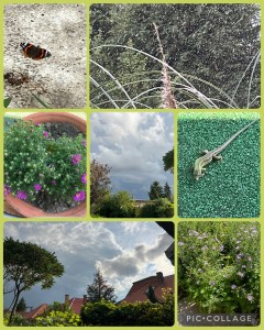 De snel in elkaar geflanste bladerdeeg-appel/vijg baksels bij de thee maakten luilekkerland op de veranda van de Datsja met uitzicht op de bosnimf en haar zonnige bos. Terwijl ik terugliep naar huis pakte de hemel zich in donkere grijsblauw tinten samen. Avontuur genoeg.