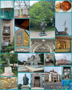 Daarna een kalm ontbijt en op pad om de tramrit te gaan maken. Mooie stad, dat Debrecen. De hoeveelheid groen valt op, parken, bossen of grote tuinen om gebouwen heen, een aangename drukte, er kwam na twee haltes een zitplaats vrij. We reden mee tot het eindpunt bij de universiteit en daarna terug tot het andere eindpunt bij het treinstation. Daar zochten we de route voor het modern art museum, dat bleek vlakbij het hotel te zijn. Dus nog een stuk mee met de tram tot halverwege en in een kalme pas naar het museum. Op dinsdag en donderdag, legde een van de mannen daar omstandig uit, zou het pas om 13.00 uur open zijn en hij gaf daarbij direct een handleiding hoe bij een soort VVV te komen, maar we hadden het Oudheidkundig museum vlakbij al op het oog. Een prachtig gebouw aan een statig park, met beelden te over.